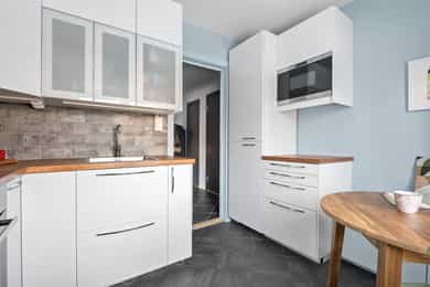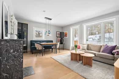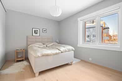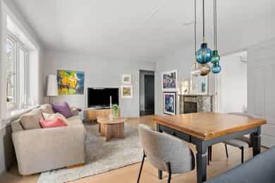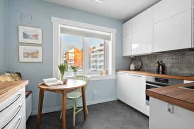 Lys, attraktiv og gjennomgående 3-roms hjørneleilighet med balkong 7 m²| Vedkamin |Pent og separat kjøkken |Vinduer 2022