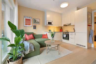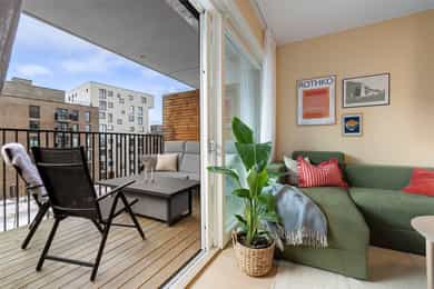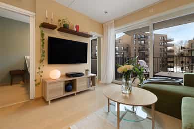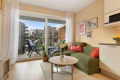 Lys og moderne 2-roms fra 2020 med vestvendt balkong | Varme i alle gulv | 5 etg m/ heis | Takterrasse | VV & fyring ink