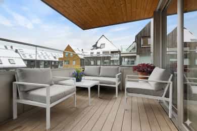 - Entré - Velkommen inn til en lys og innbydende entré med god plass til oppbevaring av sko og yttertøy. - Stue - Stuen er lys og luftig med store vindusflater som slipper inn rikelig med naturlig lys. Rommet har en åpen og sosial planløsning med god plass til både sofagruppe og spisebord. Fra stuen er det utgang til en overbygget balkong på 7 m² som forlenger oppholdsrommet på varme dager. En hyggelig og innbydende sone for både hverdag og selskap. - Kjøkken - Kjøkkenet har en moderne innredning med glatte fronter og en praktisk, frittstående kjøkkenøy som skaper både arbeidsplass og sosial sone. Det er utstyrt med integrert komfyr, bred induksjonstopp, oppvaskmaskin og kjøl/frys. Ventilator med avtrekk ført ut sørger for effektiv lufting. Et stilrent og funksjonelt kjøkken tilpasset moderne behov. - Soverom - Leiligheten har tre gode soverom med fleksible bruksområder. Hovedsoverommet har direkte tilgang til eget bad og et omkledningsrom – en luksuriøs og praktisk løsning. De to øvrige soverommene passer perfekt som barnerom, gjesterom eller hjemmekontor. Alle rommene har gode lysforhold og plass til seng, oppbevaring og personlig innredning. - Bad innenfor hovedsoverom - Stilrent og moderne bad i direkte tilknytning til hovedsoverommet og adkomst fra entreen. Fliser på vegger og gulv med varmekabler, malt himling og slukrenne i dusjsonen. Badet er innredet med veggmontert toalett, servant, dusjhjørne og opplegg for vaskemaskin. Balansert ventilasjon sikrer et godt inneklima. Oppført av fagkyndige med dokumentert oppbygging fra entreprenør. Et funksjonelt og elegant bad med høy standard. - Bad i entreen - Lekkert bad med adkomst fra entreen, oppført av fagkyndige med dokumentert oppbygging fra entreprenør. Rommet har fliser på både vegger og gulv med varmekabler, samt malt himling. Dusjsonen har slukrenne med dokumentert membranløsning, regnfallsdusj og glassvegg. Badet er videre innredet med veggmontert toalett, servant, dusjhjørne og glatt servantskap. Balansert ventilasjon sikrer godt inneklima. Et stilrent og funksjonelt bad av moderne standard.