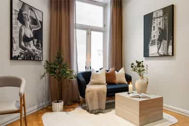 Velkommen til Oscars gate 37 - en lys og pen leilighet i et attraktivt område på Uranienborg. Leiligheten har en gjennomtenkt planløsning med stue, kjøkken, soverom og bad. Den generøse takhøyden på 3,17 meter skaper en luftig og romslig atmosfære. Her bor du i en ærverdig bygård fra 1892. Boligen har en ettertraktet beliggenhet i et urbant og populært område på Uranienborg. Her bor du med skoler, offentlig kommunikasjon, tur og rekreasjonsområder samt noen av byens mest populære handlegater like utenfor døren. Kvaliteter: - Store vindusflater som slipper rikelig inn med lys - Generøs takhøyde på hele 3,17 meter! - I nærhet til "alt" du trenger i hverdagen - Kort vei til offentlig kommunikasjon - Kjellerbod på 5 kvm