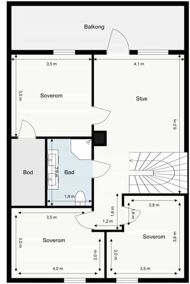 • 3 soverom, samt mulighet for et 4. soverom i loftstue