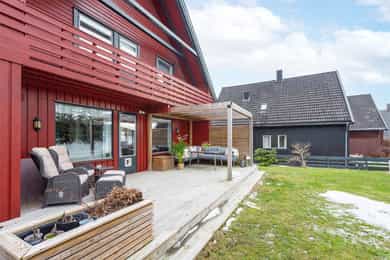 Solrik, kjedet enebolig i populært område - Hage, fine uteområder og garasje - 3 sov, 2 stuer og 2 bad - Barnevennlig!