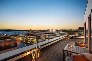 • Fantastisk utsikt mot fjorden, Hovedøya, innseilingen, Operaen, Munchmuseet, Barcode, byen, Ekeberg m.m.
