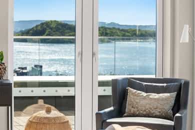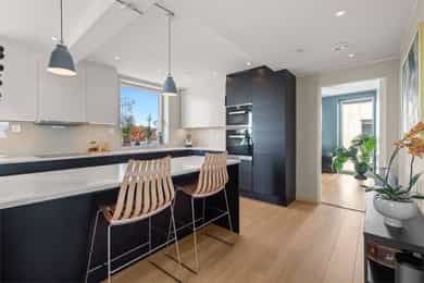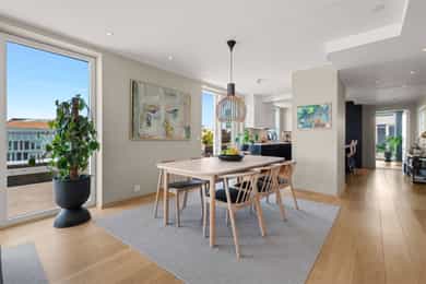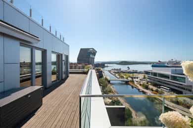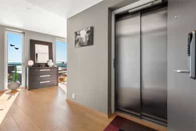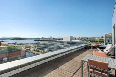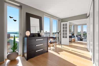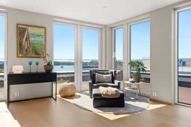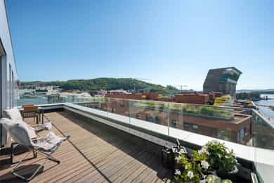 Eksklusiv penthouse med 158 kvm uteplass - Rå fjordutsikt og perfekte solforhold - Heis rett inn - To p-plasser