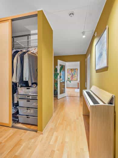 Leiligheten inneholder: Entré, stue/kjøkken, to soverom og baderom. Entré/gang: Velkommen inn! Lys og romslig entré med god plass til sko og yttertøy. For ytterligere oppbevaring er det satt inn en skyvedørsgarderobe. Du har også naturlig plass til en kommode/skohylle samt plass til knagger for å henge av deg yttertøy. Veggene er malt i et fresht fargevalg og gulvet er belagt med parkett. Det er adkomst via felles trappeoppgang med heis. Ellers har oppgangen callinganlegg. Stue/kjøkken: Lys og romslig stue med store vindusflater som gir rikelig med lys og luft. God plass til sofaseksjon med tilhørende møblement, TV-benk og spisebord. Overflatene er malt i et lyst fargevalg og gulvet er belagt med parkett. Fra stuen er det utgang til en herlig, vestvendt balkong med på 11 kvm med god plass til diverse utemøblement, planter og grill (elektrisk grill og gassgrill er tillatt). Selger har bygget et praktisk utekjøkken, plantekasser og terrassedekke i varmebehandlet furu. Balkongen har supre solforhold, så her kan du nyte varme sommerdager! Leiligheten har en sosial planløsning med åpen stue-/kjøkkenløsning. Kjøkkeninnredning med glatte fronter, benkeplate i heltre og vaskekum i stål. Kjøkkenet er fornyet med custom løsninger i eikefinert kryssfiner fra Aubo. Det er integrert platetopp, stekeovn og oppvaskmaskin, samt frittstående kjøl/fryseskap. Ventilator er tilkoblet byggets mekaniske avtrekkssystem. Det er godt med skap- og benkeplass for matlaging og oppbevaring. Under overskapene er det belysning og stikkontakter. Soverom: Boligen har to gode soverom! Hovedsoverommet har god plass til dobbeltseng, nattbord på hver side og kommode. Fra hovedsoverommet er det også adkomst til et praktisk walk-in closet med oppheng og skuffer. Det andre soverommet har plass til seng, kontorpult og øvrig møblement. Med to soverom egner det ene seg ypperlig for gjesteværelse, barnerom eller hjemmekontor. Begge soverommene er malt i pene fargevalg og gulvet er belagt med parkett. Baderom: Romslig baderom fra 2013 elektriske varmekabler i gulv. Baderommet inneholder heldekkende servant nedfelt i laminert benkeplate med underskap og overskap med speil, vegghengt toalett og dusjhjørne med rette svingbare dusjdører. Videre er det opplegg for både vaskemaskin og tørketrommel, så her har du alt du trenger på baderommet!