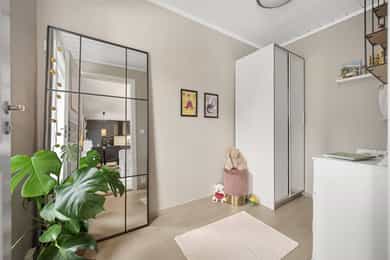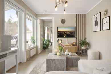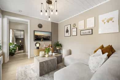 Lys, stilsikker og velholdt 3-roms toppleilighet med solrik balkong og garasje. Leiligheten ble i sin helhet pusset opp i 2020/21, og fremstår velholdt og gjennomført. Det kan nevnes nytt kjøkken, bad, overflater og etablert ekstra soverom. Leiligheten ligger i et attraktivt område som er perfekt for barnefamilier med høy trivselsfaktor, store grøntområder og bilfrie gater.