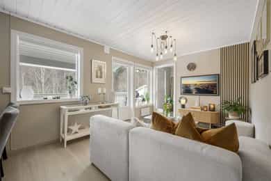 Lys, innbydende og gjennomført 3R toppleilighet med stor, vestvendt balkong - Pusset opp i 2021 - Garasjeplass med lader