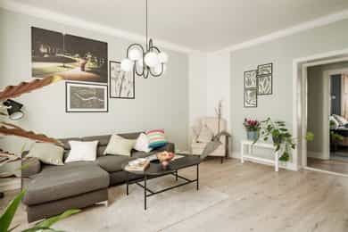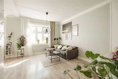 MARCUS THRANES GATE 12 Presentert av Ine-Camilla Graven Dette er en gjennomgående 2-roms leilighet med sentral beliggenhet på Torshov / Øvre Grünerløkka. Leiligheten holder god standard, og er oppgradert med blant annet varmefolie, nye gulv og nytt kjøkken de siste årene. Her bor du i et populært og sentralt nabolag med alt du måtte trenge i nærheten. Ved nedbetaling av IN-lån vil felleskostnadene være på 4.688,-/mnd. - Soverom mot bakgård - Disponibelt rom med hems - Varmtvann og internett inkl - Kort vei til offentlig transport og alle servicetilbud - Gjennomgående planløsning - God takhøyde - Smarte oppbevaringsløsninger - God standard med kjøkken fra 2021, vinduer fra 2020 og bad oppgradert i 2023 - 2 disponible kjellerboder - Superhyggelig bakgård!