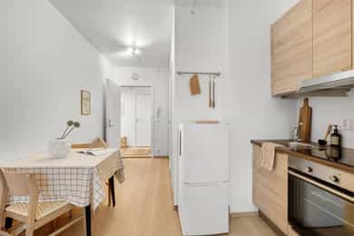 Freserveien 6 ligger i et sentralt og populært boligområde i Kværnerbyen i Oslo kommune. Bydelen er bygd på Kværner Brugs gamle tomt og har sentral beliggenhet med kort avstand til Gamlebyen, samt Bjørvika, der Operaen og Oslos nye finansdistrikt allerede er etablert. En kort spasertur unna har du blant annet Ladegården Café hvor du kan sitte ute i solen i sommerhalvåret og nyte en italiensk steinovnsbakt pizza servert med noe godt i glasset. Det er i tillegg gangavstand til Bjørvika og Sørenga. Langs Barcode er det flere restauranter som Vaaghals, Code, El Camino og Nodee Sky. Flere cafeer, butikker og SATS treningssenter finner du også her. Om sommeren er det også bademuligheter på Sørenga bad, samt et ytterligere tilbud av restauranter med uteservering på bryggen. Det er også kort vei til Tøyen, med ca. 20 minutters gange kommer du til Tøyen torg der du finner hyggelige steder som Postkontorets pizza og øl. Grønland med sitt yrende folkeliv med spennende, særpregede butikker ligger også i gangavstand fra Kværnerbyen. Kværnerbyen byr på treningssenter, kort vei til idrettshall, samt Jordal sportspark med bl.a. fotballbane, skøytehall, amerikansk fotball og skateanlegg m.m. Det er etablert fine grøntområder med vannspeil, hyggelige møteplasser og torg i nærområdet. En rekke parker og fine rekreasjonsområder ligger i gangavstand, blant annet Ekebergparken, Klosterenga kulturpark, Middelalderparken med Middelalderfestivalen, samt Tøyenparken med Tøyenbadet og Botanisk hage. Langs Alnaelva kan man gå inn mot Svartdalen med flotte skogsområder for både turgåere og mosjonister. Svartdalsskogen som er Oslos siste urskog har fine turstier og er et ypperlig sted for å ta seg en joggetur. Gjennom Kværnerbyen går vannspeilet en liten kanal med dam. I vinterhalvåret kan du ta frem skøytene, og om sommeren er dette et fint sted å samles eller gå tur. Kværnerbyen er pent opparbeidet med elementer fra gamle Kværner Brug. Servicetilbud: Dagligvarehandelen kan gjøres ved blant annet Kiwi og Coop Extra i Kværnerbyen, Nærbutikken i Konows Gate og Rema 1000 på Vålerenga. I Kværnerbyen finner du også treningssenteret Fitnessroom, apotek, frisørsalong, neglesalong, renseri og Åpent bakeri. Nærmeste postkontor er post i butikk hos Coop Prix i St. Halvardsgate, kun en liten spasertur fra boligen. Restaurant Kraft har åpnet en hyggelig nabolagsrestaurant i Turbinveien 26 med uteservering om sommeren. Ved Vålerenga-parken, som ligger en kort spasertur unna leiligheten, finner vi Smia Galleri - en skjult perle som tilbyr gourmetmat i et sjarmerende lokale. Ønsker du ytterligere servicetilbud byr Barcode/Bjørvika, Oslo City, Byporten, Aker Brygge og Grønland Basar og de øvrige handlegatene i sentrum på et rikt og variert utvalg. Ulike kafeer, barer og restauranter ligger godt innen rekkevidde. Buss, trikk og sykkel: Området gir gode mulighet for offentlig kommunikasjon. Nærmeste holdeplass er Kværnerbyen med busslinje 54 og Kværner med buss 34, 70 og 74. Det går nattbuss fra lørdagsøndag til stoppet Kværner som ligger på toppen av "Kværnertrappa". "Kværnertrappa" gjør busstoppet i Konows gate lett tilgjengelig for alle beboere i Kværnerbyen. I helgen fra Lørdag til Søndag går også 54-bussen som nattbuss til Kværnerbyen. Fra holdeplassen Kværnerbyen går 54-bussen og bruker ca. 6 minutter til Bjørvika og 17 minutter til Rådhuset og Aker brygge. Videre går buss nr. 20 og 37 fra Galgeberg og trikk 18 og 19 fra St. Halvards plass. Det går bussrute døgnet rundt til Galgeberg. I Kværnerbyen er det etablert bysykkelstativ der sykler kan leies til en rimelig pris for rask adkomst til byen eller en hyggelig søndagstur. El-sparkesyklene kan også benyttes til og fra Kværnerbyen