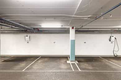 Boligen disponere én parkeringsplass (nr.47) i felles garasjeanlegg. Det er mulighet for å montere ladeboks for elbil. Gateparkering etter områdets bestemmelser. Følgende priser gjelder. pr. 2025: - Bensinbil, dieselbil, hybridbil, ladbar hybridbil: 6200 kroner - Elbil: 2090 kroner - Motorsykkel og moped: 3100 kroner - El-motorsykkel og el-moped: 1045 kroner For mer info se her: https://www.oslo.kommune.no/gate-transport-og-parkering/parkering/beboerparkering/priser-for-beboerparkeringstillatelse/