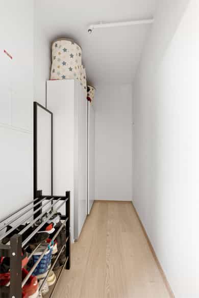 Leiligheten ligger i byggets 2.etasje og består av: Delt entré mellom hoveddel og hybel. Hybel: Stue/kjøkken og bad: Hybelen har en god utforming med kjøkkenkrok og eget bad. Kjøkkeninnredningen har fått ny benkeplate, platetopp og stekeovn i forbindelse med salget. Det er byttet gulv og gulvlister av Parketthuset. Badet består av dusj, servant med skap og speilskap, toalett og opplegg for vaskemaskin. Varmekabler i gulv og pene, moderne fliser. Hybelen har god plass til seng/sofa og lite spisebord. Eier opplyser at de har hatt en leieinntekt på 8 000 kr i mnd, men vet at andre har tatt en høyere pris (rundt 9 000-11 000 kr). Det er opp til nye eiere å selv bestemme hva de tar i husleie for hybelen. Hoveddel: Innvendig bod, 3 soverom, 1 bad, åpent løsning mellom kjøkken og stue, samt utgang til en stor, overbygd balkong på 29 kvm. Hoveddelen har blitt malt til salg og fremstår som godt vedlikeholdt. Alle soverom er av god størrelse og har plass til garderobeskap. Stuen er romslig med god plass til sofagruppe og stort spisebord. Kjøkkenet er levert av Atlas og er stort med mye skap- og benkeplass. Det er integrerte hvitevarer som medfølger salget. Det medfølger en kjellerbod på 5,37 kvm og en garasjeplass med muligheter for å installere el-lader om man ønsker dette. Plassen er merket nr 47.