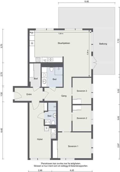 Selger har i forbindelse med salget innhentet en tilstandsrapport fra Karl -Magnus Gustavsen, datert 08.09.2025. Rapporten er en teknisk gjennomgang av boligen og angir eventuelle byggetekniske avvik, samt kostnadsoverslag for eventuelle oppgraderinger. Tilstandsrapporten og selgers egenerklæring er en del av denne salgsoppgaven og må leses nøye av interessenter før det legges inn bud. Kjøper anses kjent med de opplysninger som tydelig gis i en offentlig godkjent tilstandsrapport, og kan følgelig ikke reklamere på belyste forhold. Vi vil gjøre spesielt oppmerksom på viktigheten av å lese igjennom rapportens TGIU (tilstandsgrad ikke undersøkt), samt TG2 og TG3 som angir avvik fra normal slitasje, høy alder, bygningsdel som må utbedres, og lignende. Det følgende er hentet fra den bygningssakkyndiges beskrivelse av boligen: 2025 Modernisering: Ny parkett og gulvlister i hybelen - Utført av Parkethuset. 2025 Modernisering: Utbedring av dimmer til kjøkken - Utført av Sæther Elektriske AS 2025 Modernisering: Maling av vegger og takflater i alle rom forutenom soverom i hovedleiligheten og bod - Utført med egeninnsats 2023 Modernisering: Treheller på balkongen ble lagt i 2023. Oljet nå i august 2025 - Utført med egeninnsats 2020 Modernisering: Utbedring av eluttak ved tv - Utført av Storm Elektro Oslo AS Standard: Boligen har gjennomgående normal god standard. Bygning, generelt: Boligblokk på 6 etasjer og to underetasjer med bærende konstruksjoner i betong med utfyllende bindingsverksvegger. Etasjeskillere av betong og utvendige fasader er forblendet med teglstein. Flatt yttertak, tekket med takpapp e.l. Grunnmur fundamentert med betongkonstruksjoner til faste eller komprimerte masser. Drenering antas utført i henhold til gjeldene praksis på byggetidspunktet. Rapporten omfatter kun selve leiligheten og det som normalt faller under eierens selvstendige vedlikeholdsansvar som seksjons- eller andelseier. Dette ansvaret inkluderer vanligvis alt innenfor leilighetens vegger. Tilstandsrapporten dekker derfor ikke bygningens fellesdeler, som tak, yttervegger, grunnmur, drenering og felles tekniske installasjoner. Unntaket er balkonger, vinduer og dører, som likevel vurderes i henhold til krav i Forskrift til avhendingslova (tryggere bolighandel). Kjøper anbefales å sette seg inn i sameiets eller borettslagets vedtekter og årsberetning for informasjon om utført og planlagt vedlikehold. Det oppfordres også til å innhente vedlikeholdsplaner og relevante rapporter som omhandler felles bygningsdeler i bygget. Vinduer: Malte trevinduer med utvendig aluminiumsbeslag og 3-lags isolerglass Produsert av NorDan, 2013 og 2018 VEDLIKEHOLD. De fleste vinduene ble skiftet ut i 2018, men unntak av stuevinduene som vender ut mot balkongen. Dører: 3stk malte entrédører av treverk med kikkehull, brann og lydklassifisert EI30/35Db. Produsert av Dooria Malt tofløyet balkongdør av treverk med utvendig aluminiumsbeslag og 3-lags isolerglass fra 2013 Dørene fremstår med normal bruksfunksjon og bruksslitasje ift. alder. Enkelte hakk og merker må forventes. Balkonger, terrasser og rom under balkonger: Fra stuen er det adkomst til en nordvestvendt balkong på 29m2. Balkongen er oppført i betong med trefliser på gulvet og har etrekkverk av lakkert aluminium og glass. Balkongen er ellers utstyrt med strømuttak og utebelysning. Rekkverkshøyden er ca. 1,20m og høydeforskjellen til terrenget er ca. 3m. Overflater: På veggene er det malte slette flater i alle rom. Innvendige tak med senket og malt gipshimling i entré og gangen samt innfelt lys i gangen, mens øvrige rom har malte slette flater. Overflatene er skjønnsmessig vurdert utifra hva som forventes å være normal bruksslitasje. Mindre avvik som stedvis hakk, sprekker og merker må forventes i en brukt bolig og kommenteres ikke. Noe overflateoppussing må som regel påregnes ved kjøp av en brukt bolig. Etasjeskille/gulv mot grunn: Etasjeskiller av betong. To utvalgte rom er kontrollert for høydeforskjell. Større avvik kan derfor forekomme, da ikke alle rom er kontrollert. I denne boligen er stue/kjøkken og hybelen kontrollert og avvikene ligger innenfor standardens krav til godkjente måleavvik. - I stue/kjøkken ble det målt 2mm avvik på 2m, totalt 8mm gjennom hele rommet. - I hybelen ble det målt 3mm avvik på 2m, totalt 6mm gjennom hele rommet. Kravet er maks 10mm på 2m, totalt 15mm gjennom hele rommet for å få TG1, maks 20mm på 2m, totalt 30mm gjennom hele rommet for å få TG2 (iht NS3600). Radon: Bygninger som er bygd etter Teknisk forskrift fra 2010 skal være utført med forskriftsmessig radonforebyggende tiltak slik at innstrømningen av radon fra grunn begrenses. Dokumentasjon i form av ferdigattest foreligger. Ved ferdigattest skal de ansvarlige firmaene ha gitt sine samsvarserklæringer og kontrollerklæringer på at deres arbeid er utført i henhold til lov, forskrift og tillatelser. Firmaene som erklærer ansvar i en byggesak skal ha tilstrekkelige kvalifikasjoner, blant annet utdanning og praksis, til de oppgavene de erklærer ansvar for. Ferdigattesten skal være en bekreftelse på at arbeidene er utført i henhold til regelverket, og i utgangspunktet vil ferdigattesten være dokumentasjon på faglig god utførelse. Bad/Våtrom hovedleilighet: Byggeforskrift: Teknisk forskrift fra 2017 Dokumentasjon: Beboermappe, produktdatablader, teknisk godkjenning og monteringsbeskrivelse for membranproduktene, samt en uttalelse fra daglig leder i Sans Bygg. Utførende foretak: Sans Bygg AS Badet er opprinnelig bygget som en prefabrikert baderomskabin, men alle badene i borettslaget ble totalrenovert i perioden 2017-2018 grunnet en konstruksjonsfeil. En baderomskabin er en forhåndsprodusert del som settes inn i bygget i stedet for at badet bygges på stedet, ofte som et totalt og ferdig bad. Overflater vegger og himling: Fliser på vegger, senket og malt innvendig tak med innfelt lys. Det er utført stikkprøveko