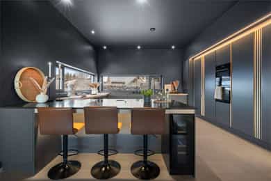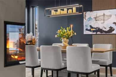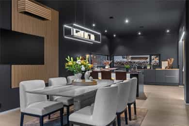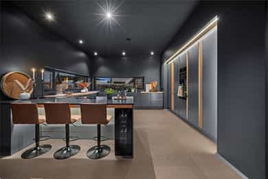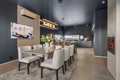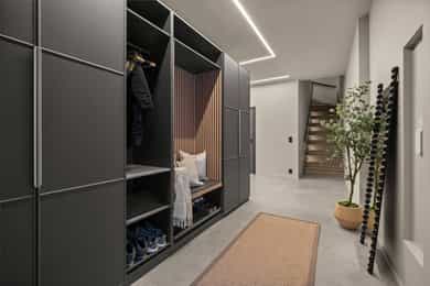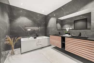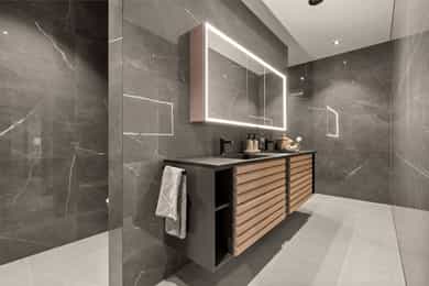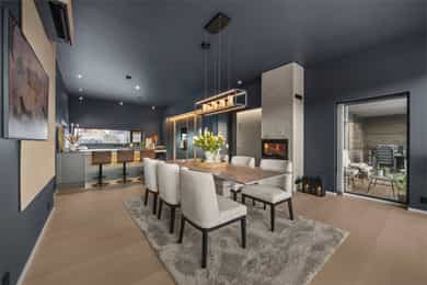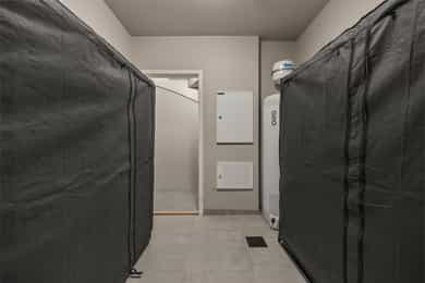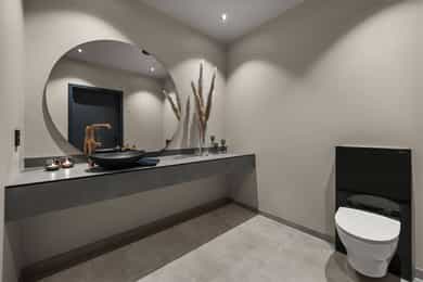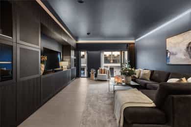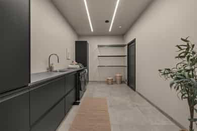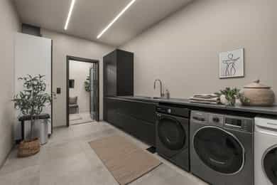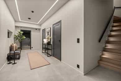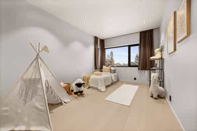 U. Etasje: Hall/Gang: I denne boligen har du en praktisk hverdag, hvor du parkerer enkelt i garasjen med direkte adkomst til gang. Vaskerom: Svært romslig og praktisk vaskerom med flislagt gulv og behagelig gulvvarme. Vaskerommet er utstyrt med pen innredning, utslagsvask og nisje for flere vaskemaskiner og tørketrommel. Her er det gode oppbevaringsmuligheter i skuffer og skap. Toalettrom: Romslig og delikat toalettrom med flislagt gulv og gulvvarme. Toalettrommet har moderne utførelse i likhet med resten av boligen, og er utstyrt med servantbolle over flislagt benkeplate, samt toalett. Treningsrom: Flott treningsrom som gjør det enkelt å innlemme en treningsøkt i en hektisk hverdag. Rommet har matter på gulv og malt i lune fargetoner. Her er det plass for å etablere ulike treningsapparater. Bod/Teknisk rom: Praktisk bod med hyller for plass til diverse lagring. I tillegg er det er romslig teknisk rom i denne etasjen. 1. Etasje: Kjøkken og spisestue: Meget stilrent, moderne og flott kjøkken med innredning fra HTH med slette og profilerte fronter, samt eksklusiv benkeplate i stein og heltre. Kjøkkenet er utstyrt med integrerte hvitevarer som stekeovn, platetopp, mikro, to kjøleskap, fryseskap, oppvaskmaskin og vinskap. Videre har kjøkkenet installasjoner som quooker, komfyrvakt og waterguard og praktisk løsning for blant annet kaffemaskin. Det er godt med oppbevaringsplass samt barløsning med sitteplass for 3. Her har du moderne og tilpassede løsninger. Det er lagt opp til innebygde høyttalere på kjøkkenet. I tilknytning til kjøkkenet er det flott spisestue. Spisestuen er stor og romslig, og innredet med langbord og tilhørende møblement. Her kan du enkelt samle familie eller gjester for hyggelige sammenkomster. Det er etablert peis og varmepumpe i spisestuen som bidrar til en lun og stemningsfull atmosfære i oppholdsrommet. Det er i tillegg god takhøyde, vegger og tak malt i en lun fargetone og tilpasset belysning. Det er montert screens på alle vinduer over 70 cm bredde, som kan styres med app og tidsstyres etter ønske. TV-stue: Egen tv-stue som er meget romslig. Her er det god plass for sittegrupper. Stuen har tilpasset innredning med god plass til oppbevaring og TV. Stuen er malt i en lun og fin fargetone og har tilpasset belysning i tak. Det er lagt opp til innebygd surround i TV-stuen. Hovedsoverom - bad: Flott hovedsoverom med god plass for dobbeltseng og tilhørende nattbord. Her får du hotellfølelsen, med adkomst til eget garderoberom og delikat bad. Garderoben er innredet med flere garderobeskap - her kan du enkelt organisere garderoben. Videre adkomst til eget bad, med lekre flislagte overflater og behagelig varme i gulv. Badet er utstyrt med dobbel servant med underskap, speilskap med lys, toalett og dusjnisje med regndusj. Det er lagt opp til innebygde høyttalere på badet. Øvrige soverom: I samme etasje finner du to gode soverom. Begge soverommene er meget romslige, har lyse overflater og gode møbleringsmuligheter. Soverommene passer perfekt som både barnerom, gjesterom eller kontor. Verdt å nevne er at det er montert egen varmepumpe i soveromsdelen av huset. Bad 2: Hovedbadet er stilrent og moderne, har lekre fliser på gulv og vegger, samt behagelig gulvvarme. Badet er utstyrt med dobbel heldekkende servant med underskap, speil, toalett, badekar og dusjhjørne med dobbel regnfallsdusj og plassbygget hylle med belysning. Meget praktisk med klessjakt ned til vaskerom fra badet. Det er lagt opp til innebygde høyttalere på badet.