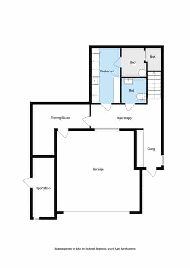 BRA-i: 142 kvm. Hall, toalettrom, vaskerom, bod, teknisk rom, gang, garasje