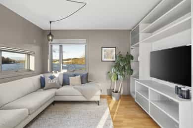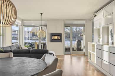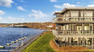 Denne praktfulle leiligheten har en særdeles idyllisk beliggenhet ved vannkanten, på ytterste rekke på Borgestadholmen. Det er umiddelbar nærhet til hyggelige gangstier langs elven, badestrand, bryggeanlegg samt få minutters gange til gode bussforbindelser. Leiligheten er påkostet de seneste årene og fremstår som meget innbydende og delikat med pene, hyggelige rom. Det er flotte lysforhold via store panoramavinduer og fra stor veranda kan man nyte en vakker utsikt og fantastiske solforhold, fra tidlig morgen til sen kveld. Enkel og kort adkomst fra garasje til inngang. Inneholder: Entrè, stue/spisestue, kjøkken, tv-stue, 3 soverom, 2 bad og bod. Garasjeplass og sportsbod. IN-ordning i borettslaget. Dersom man innfrir fellesgjeld vil mnd felleskostnader beløpe seg til kr. 6.540,-. Må sees!