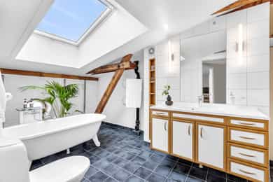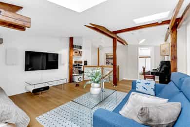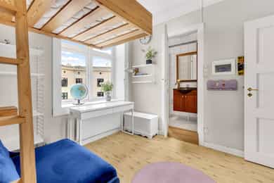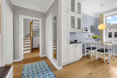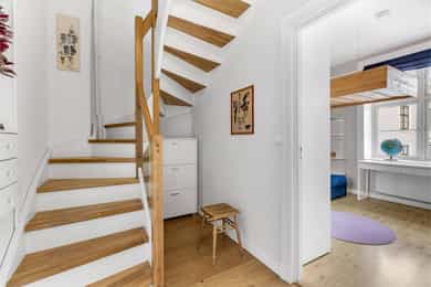 Jonas Dahlén har gleden av å presentere Roveruds gate 2! En helt spesiell bolig over to plan med gjennomført stil og sjeldent særpreg. Leiligheten byr på en luftig og sosial hovedetasje med generøs takhøyde på 2,83 meter med vedovn og gode lysforhold. Via intern trapp kommer du til en stemningsfull toppetasje med synlige trebjelker, flere rom og et romslig bad med badekar og takvindu. Planløsningen gir en tydelig og praktisk soneinndeling mellom opphold og privatliv. Leiligheten ligger i et veldrevet og solid borettslag, med en hyggelig og solrik bakgård. Her er det opparbeidet pene fellesarealer hvor man kan nyte hele året rundt! Boligen ligger sentralt og attraktivt til på Sagene, med kort vei til kollektivtransport, butikker, caféer og bylivet. Velkommen!