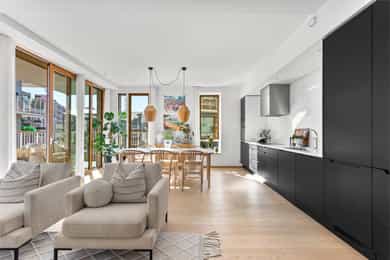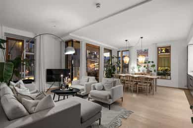 Nordvik Frogner har gleden av å presentere Operagata 75A - En eksklusiv og moderne 3-roms hjørneleilighet med heisadkomst, beliggende i det ikoniske boligprosjektet Vannkunsten i Bjørvika. Leiligheten har en tiltalende planløsning med en fantastisk åpen og romslig stue-/kjøkkenløsning som virkelig imponerer med sine lysforhold. Herlig hjørnebalkong fra stuen på ca. 12 kvm med flott utsyn som strekker seg rundt byggets fasade, en kvalitet som gir både gode solforhold og flere møbleringsmuligheter. Høydepunkter:
