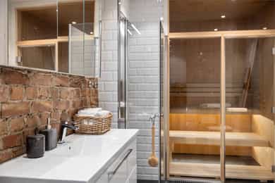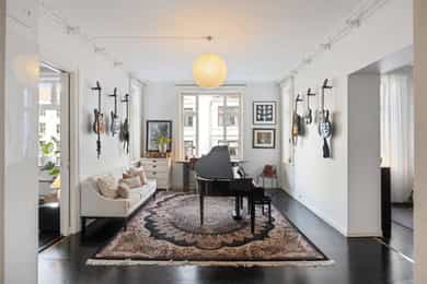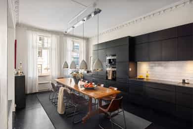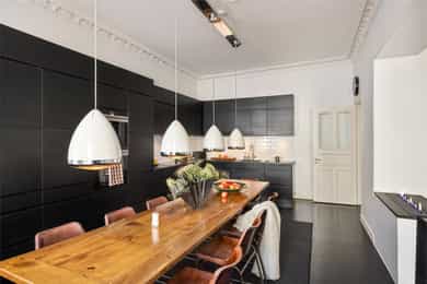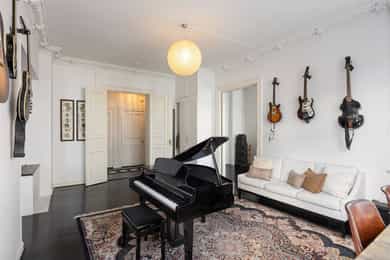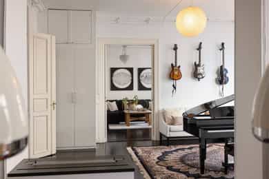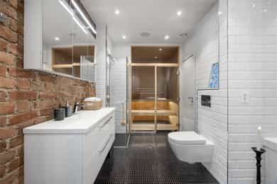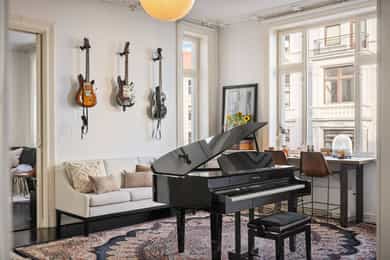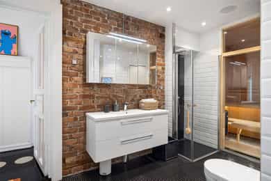 Loftsbod på ca. 4m². Gulvareal måles til ca 8m². Det er skråtak. Kjellerbod på ca. 16m². Takhøyde måles til ca 2,05m. Kjellerbod på ca. 9m². Takhøyde måles til ca 2,09m. Takhøyder måles til følgende: Hybel (grønn på plantegning): Stue: 3,09m Bad:2,07m Hybel (blå på plantegning): Gang: 2,29m Stue: 3,26m Bad: 2,38m Leiligheten/hoveddel: Entre: 3,26m Bad: 2,48m Spisestue 3,25m. Leiligheten ligger i byggets 2.etasje. Klassisk bygårdsleillighet med høy takhøyde samt rosett og stukkatur i himling. Hele leiligheten har blitt renovert i 2017 hvor det har blitt adskilt 2 hybler. Leiligheten ventileres med mekanisk avtrekk på 2 av 3 bad samt kjøkken i leiligheten. Vinduer med 2-lags glass. Innerdører av type fyllingsdører/hvit omramming. Entrédør har lyd- og brannklassifisering 35dB/B30. Entré/gang i hoveddel: Malt overflate på gulv. Malt overflate og malt panel på vegger. Malt overflate i himling. Rosett og stukkatur i himling. Porttelefon og sikringsskap. Oppheng for klær. Stue/soverom i hoveddel: Malt overflate på gulv og malt overflate på vegger. Malt overflate i himling. Rosett og stukkatur i himling. Panelovn og vedovn samt skyvedørsgarderobe. Stue i hoveddel: Malt overflate på gulv og malt overflate på vegger. Malt overflate i himling. Rosett og stukkatur i himling. Panelovn og biopeis. Kjøkken i hoveddel: Malt overflate på gulv. Malt overflate og flis på vegg over benkeplate på vegger. Malt overflate i himling. Stukkatur i himling. Panelovn. Innredning med glatte fronter. Granitt benkeplate (eiers opplysning) med en tykkelse på 20mm. Underlimt oppvaskkum med ettgreps armatur som er svingbart. Armatur har Quooker system ved at man får kokende vann ut av kranen. Spotter innfelt i overskap. Innredning med mekanisk avtrekksvifte over platetopp. Det er integrert platetopp, to oppvaskmaskiner, stekeovn, kjøleskap, fryseskap og kaffemaskin fra Siemens. Integrert vinskap. Baderom i hoveddel: Flis på gulv og flis på vegger og teglsteinsvegg. Malt overflate og downlights i himling. Innfelte høyttalere i himling. Elektrisk gulvvarme. Servantskap med en bredde på 118,5cm. Overlimt servant med ettgreps armatur. Speilskap med lys. Regnfallsdusj og håndholdt dusj. Dusjnisje med glassdører, mekanisk avtrekk, veggmontert wc og badekar. Vaskerom i hoveddel: Egen del innredet som vaskerom med adkomst fra hovedbad. Vaskemaskin og Tørketrommel fra Miele medfølger salget. Badstue i hoveddel: Flis på gulv og panel på vegger. Panel i himling. Badstueovn. Sittebenker og lys. Toalett i hoveddel: Flis på gulv og flis på vegger. Malt overflate i himling. Elektrisk gulvvarme. Servantskap med en bredde på 40,5cm og glatte fronter. Overlimt servant med ettgreps armatur. Utstyrt med mekanisk avtrekk og veggmontert wc. Soverom i hoveddel: Malt gulv og malte overflater på vegger. Malt overflate i himling. Stukkatur og rosett i himling. Panelovn. Utgang til balkong. Fordelerskap i vegg mot bad. Gang med adkomst til hybler markert rosa i plantegning: Malt overflate på gulv og malt overflate på vegger. Malt overflate i himling. Sikringsskap. Stue/kjøkken hybel markert grønn i plantegning: Malt på gulv og malt overflate på vegger. Malt overflate og downlights i himling. Panelovn. Utgang til balkong og adkomst til hems. Kjøkkeninnredning med glatte fronter. Laminat benkeplate med en tykkelse på 28mm. Nedfelt oppvaskkum med ettgreps armatur. Det er integrert kjøleskap, platetopp og stekeovn. Bad hybel markert grønn i plantegning: Flis på gulv og flis på vegger. Malt overflate og downlights i himling. Elektrisk gulvvarme. Servantskap med en bredde på 40 cm. Overlimt servant med ettgreps armatur. Utstyrt med dusjnisje, innfellbare glassdører, mekanisk avtrekk, opplegg for vaskemaskin og vaskemaskin som medfølger salget. Veggmontert wc og bereder i himling. Stue/kjøkken hybel markert blå i plantegning: Malt overflate på gulv og malt overflate på vegger. Malt panel i himling. Panelovn. Adkomst til hems. Kjøkkeninnredning med glatte fronter. Laminat benkeplate med en tykkelse på 28mm. Nedfelt oppvaskkum med ettgreps armatur. Innredning med kullfiltervifte over platetopp. Det er integrert stekeovn, platetopp og kjøleskap. Bad hybel markert blå i plantegning: Flis på gulv og flis på vegger. Malt overflate i himling. Elektrisk gulvvarme. Servantskap med en bredde på 49,5 cm. Servant med ettgreps armatur fra Grohe. Speilskap Utstyrt med bereder i himling, naturlig avtrekk, gulvstående wc, åpen dusj og opplegg for vaskemaskin samt vaskemaskin som medfølger salget.