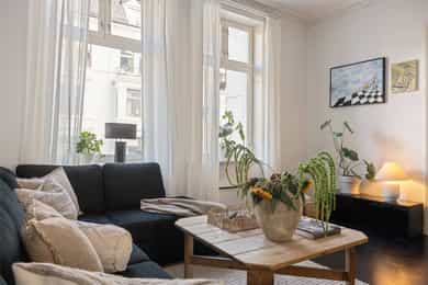 Velkommen til Odins gate 1D. Herskapelig og stilfull leilighet med god standard. Her får du to hybler som gir leieinntekter, eller areal til eget bruk. Boligen byr på tidløse klassiske detaljer, elegante gulv og eksklusive materialvalg som skaper en lun og sofistikert atmosfære. Dette er en sjelden mulighet i et attraktivt område! Høydepunkter: - To hybler med leieinntekt, totalt NOK 291.600,- per år som dekker rentekostnader på et lån pålydende MNOK 5,3 forutsatt rente på 5,5 % - Separat inngang til hybel 1 og 2 via baktrapp - Generøs takhøyde med opptil 3,25 meter - Tre stuer på rad - Hovedsoverom vendt mot rolig bakgård - Biopeis og vedovn - Større oppgradering av leiligheten i 2017 med blant annet to baderom og kjøkken - Totalt 29 kvm med boder fordelt på loft og kjeller