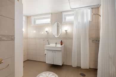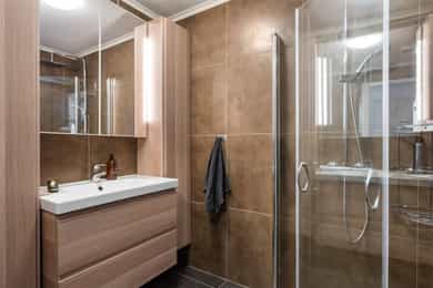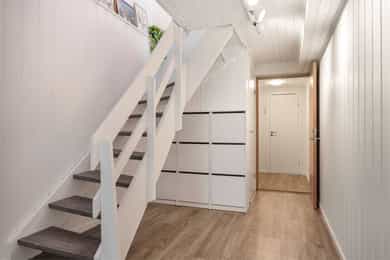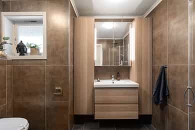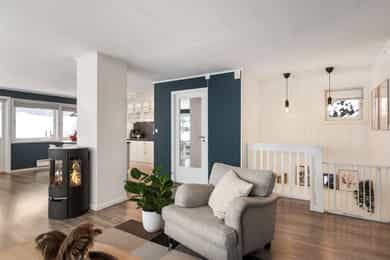 Entré Lys entré/gang i 1.etasje med noe avhengingsplass til klær og sko, adkomst til mellomgang og åpent inn til stue. Egen inngang i underetasje til utleiedel. Stue 1.etasje byr på et stort og lyst oppholdsrom med særdeles gode dagslysforhold fra de mange vindusflatene. Åpen stue og kjøkkenløsning som gir et luftig og sosialt rom. Fra spisestueområdet er det utgang til en stor og fin terrasse med gode solfrohold. Stuen har en pen peisovn med glass på begge sider slik at flammene syns både fra sofakroken og kjøkkenet. Stuen har gode møbleringsmuligheter til sittegrupper, vitrine skap og den slags. Koselig stue i underetasje med dels åpen løsning til kjøkkenet. Stuen har ulike alternativer til møblering og oppvarmingsmulighet med både varmepumpe og peisovn. Kjøkken Kjøkken i 1.etasje i åpen romløsning til spisestue og stuedel. Et sosialt og moderne kjøkken med trivelig kjøkkenøy. Innredningen har lyse laminerte skrog med slette moderne og tidløse fronter, enkelte overskap med glassfronter. Laminert benkeplate med dobbel oppvaskkum i metall. Kitchenboard i benkeryggen ved vaskesone. Kjøkkenøy med integrert koketopp og avtrekksvifte over. Sitteplasser i barløsning på kjøkkenøy. Det er integrert koketopp, stekeovn, oppvaskmaskin, kjøl/fryseskap og micro. Kjøkkenet har generelt godt med skap- og benkeplass. Kjøkken i underetasje har innredning med laminerte skrog og slette fronter. Laminert benkeplate med oppvaskkum i metall, fliser i benkeryggen over koke sone. Over og underskap til oppbevaring, god benkeplass. Frittstående plass til hvitevarer som komfyr, oppvaskmaskin og kjøleskap. Plass til kjøkkenbord med tilhørende stoler. Bad, wc og vaskerom Bad i 1.etasje er helfliset med i hovedsak store 60x60 fliser på vegger og gulv, himlingsplater i himlingen. Nyere og plassrik tredelt innredning med underskap/skuffer og langskap på begge sider. Innredningen er laminert med slette fronter i "eike" look. Stort og praktisk speilskap. Ellers har badet dusjhjørne med innfellbare dusjdører for plassbesparelse og vegghengt toalett. Det er varme i gulvet og ventilasjonsvifte. Tilhørende hoveddel er det et romslig og praktisk vaskerom i kjeller som er noe oppgradert i 2024. Moderne fliser på gulv og lysmalte betongvegger, himlingsplater i himlingen. Romslig og plassrik innredning i flere soner med god oppbevaringsplass. Benkeplass og oppvaskkum i metall. Opplegg for vaskemaskin og tørketrommel under benk. Bad tilhørende utleiedel har en romslig størrelse med fliser på vegg og belegg på gulv. Himlingsplater i himlingen. Enkel servant med underskap, fritthengende høyskap på motsatt vegg. Dusjhjørne med forheng og opplegg for vaskemaskin. I tillegg et separat toalettrom med lyse overflater, veggehengt toalett og servant med underskap. Soverom Boligen har tre fine soverom i 1.etasje med gode størrelser. Romslig hovedsoverom med utgang til egen luftebalkong og plassrik skyvedørsgarderobe med speilfronter. De to andre rommene har også fine størrelser og er jevnstore. Fine barnerom, kontor eller gjesterom. Begge rom har også garderobeskap. I underetasjen er det et soverom tilknyttet utleiedelen som også har svært god størrelse samt en plassrik garderobeløsning med skap. Lagring Boligen har utvendig og innvendig lagring. Bodrom innvendig i underetasje. Garasje og bod utvendig. Tekniske installasjoner Synlige vannrør i plast og metall. Synlige avløpsrør i plast. Stoppekran er plassert på toalettrom i underetasje. Varmtvannsbereder på ca. 200 liters kapasitet. Boligen har naturlig ventilasjon. Installert luft til luft varmepumpe. Elektrisk anlegg med automatsikringer med åpent og skjult ledningsnett. Det er nylig foretatt el-kontroll. Generelle materialvalg Innvendige gulv med laminat og belegg. Vegger med malte plater og himlinger med malte plater og himlingsplater. Trapp i tre mellom etasjene. Innvendige tredører og enkelte dører med glassfelt. _________________________ Det er i forbindelse med salget utarbeidet en tilstandsrapport fra bygningssakkyndig. Tilstandsrapporten er en teknisk gjennomgang av boligen med oppdagede avvik. Forhold som har fått TG2 og TG3 må gjennomgås spesielt nøye, da disse indikerer avvik fra normal slitasje og/eller høy alder, med mulig behov for utbedring. Bygningsdeler som har fått TGIU er ikke undersøkt av takstmann. Bygningsdeler som har fått TG2: - Utvendig > Taktekking Avvik: Mer enn halvparten av forventet brukstid er passert på taktekkingen. Mer enn halvparten av forventet brukstid er passert på undertak. Taktekkingen er besiktiget fra bakkenivå og innvendig i bolig da det ikke var godkjent sikringsutstyr for arbeid på tak på befaringen. Tilstandsgrad gitt pga. nevnte forhold. - Utvendig > Nedløp og beslag Avvik: Mer enn halvparten av forventet brukstid er passert på renner/nedløp/beslag. Malings/folieflass registrert. Vindskier bærer preg av slitasje. Snødekte beslag og takrenner. Frostsprengte nedløp. Tilstandsgrad gitt pga. nevnte forhold. - Utvendig > Veggkonstruksjon Avvik: Det er ingen eller liten lufting i nedre kant av kledning mot grunnmur. - Utvendig > Takkonstruksjon/Loft Avvik: Det er påvist avvik rundt gjennomføringer i takflaten. - Utvendig > Vinduer Avvik: Det er påvist at enkelte vinduer er vanskelig å åpne/lukke. Karmene i vinduer er slitte og det er sprekker i trevirket. - Utvendig > Dører Avvik: Det er påvist dører som er vanskelig å åpne eller lukke. Karmene i dører er værslitte utvendig og det er sprekker i trevirket. - Utvendig > Balkonger, terrasser og rom under balkonger Avvik: Det er værslitt/oppsprukket trevirke/trepaneler. - Utvendig > Utvendige trapper Avvik: Trapp ned til utleie del var delvis snødekket og det anbefales derfor ytterligere undersøkelser. Tilstandsgrad gitt pga. nevnte forhold. - Innvendig > Overflater Avvik: Knirk i gulv enkelte steder. Oppsprekking på innvendig hjørner. Tilstandsgrad gis pga. nevnte forhold. - Innvendig > Etasje