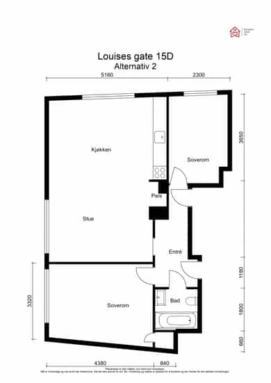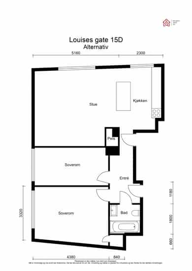 BRA-i: 70 kvm. Entré, bad, 2 soverom, kjøkken og stue.