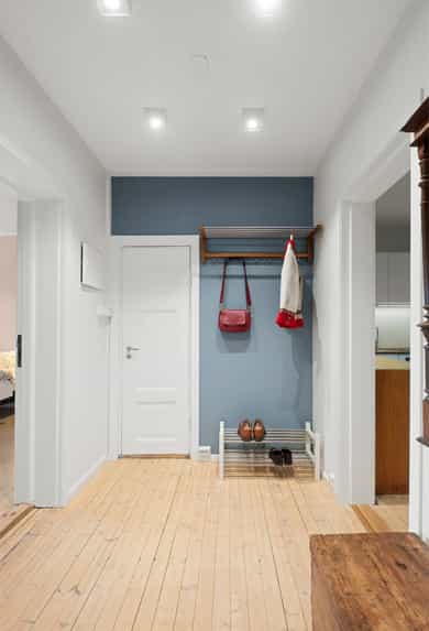 5. etasje: bad, entré, kjøkken, stue, spisestue, to soverom.