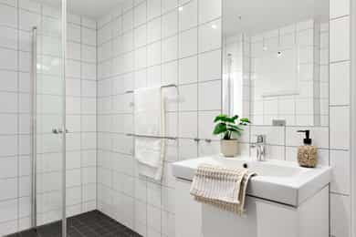 ENTRÉ: Velkommen inn! Leiligheten har en lys og innbydende entré med en takhøyde på 2,22 meter, som gir et romslig og åpent førsteinntrykk. Her finnes en praktisk nisje til oppheng av tøy og plass til sko, samtidig som de lyse og moderne overflatene gir et stilrent uttrykk som videreføres gjennom hele boligen - et tidløst utgangspunkt som enkelt kan tilpasses din stil. Her kan du flytte rett inn! STUE MED UTGANG TIL BALKONG: Stuen er lys og innbydende med store vindusflater som gir godt lysinnslipp og utsikt mot nærområdet. Den smarte, fleksible planløsningen gir god plass til sofagruppe, TV-møbel og spiseplass. Gulvet er belagt med 3-stavs parkett, og takhøyden er 2,52 meter. Vegger og himlinger er malt i lyse, moderne toner, og stuen gir et godt utgangspunkt for å innrede med egne møbler og personlige detaljer. Fra stuen er det direkte utgang til en nordvendt balkong på ca. 3 m². Balkongen fungerer som et lite, privat uteområde hvor du kan nyte en kaffe eller frisk luft på fine dager. Den har plass til noen utemøbler og planter, og blir en hyggelig forlengelse av stuen i sommerhalvåret. ÅPEN KJØKKENLØSNING: Kjøkkenet har en åpen og praktisk løsning som gir en luftig og innbydende atmosfære, og legger godt til rette for både hverdagsbruk og sosialt samvær. Innredningen har glatte fronter og laminat benkeplate med nedfelt vaskekum. Det er belysning over benkeplaten som gir godt arbeidslys, samt kjøkkenventilator over kokeplass. Komfyr, kjøleskap og oppvaskmaskin er inkludert i kjøpet, hvorav oppvaskmaskin og kjøleskap er fra 2024. Det er også montert komfyrvakt, som bidrar til økt trygghet i boligen. SOVEROM: Soverommet er romslig med plass til dobbeltseng, nattbord og øvrige møbler. Her er det god plass til oppbevaring av klær i garderobeskapet, som gir både oversikt og praktisk utnyttelse av rommet. Store vindusflater sikrer rikelig med naturlig lys, som skaper en lys og behagelig atmosfære. BADEROM: Leiligheten har et pent flislagt baderom med gulvvarme. Baderommet har himlinger med malte plater, innfelte downlights, og er innredet med vegghengt klosett, servant nedfelt i innredningen, og dusjhjørne med svingbare glassdører. Det er opplegg for vaskemaskin og badet har balansert ventilasjon. OPPBEVARING: Leiligheten disponerer en kjellerbod på ca. 5 m², merket 26. Det gjøres særskilt oppmerksom på at bod som er medtatt som BRA-e og i totalt BRA ligger på fellesareal, men disponeres av denne leiligheten. ØVRIG INFORMASJON: Entrédør: Lyd- og brannklassifisert entrédør. Vinduer: Vinduer med 3-lags press glass, prod 2012. Balkongdør: Balkongdør med 3-lags glass Overflater etc.: Himlinger med malte plater og malt betong. Vegger med malte plater og malt betong. Gulv med 3-stavs parkett. Takhøyden: Takhøyden i stuen ble målt til 2,52 m og 2,22 m i entréen. Innerdører: Glatte innerdører. Ventilasjon: Balansert ventilasjon. Elektrisk anlegg: Automatsikringer. Oppvarming: Boligen varmes opp av radiatorer og varmekabler på baderom.