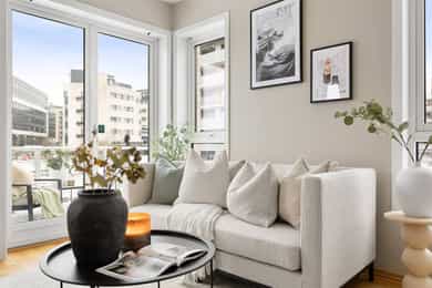 I samarbeid med Storebrand og HELP tilbyr Nordvik Boligkjøperpakke til våre boligkjøpere. Boligkjøperpakken er et gunstig forsikringskonsept som inneholder alle de forsikringene du trenger til den nye boligen din. Boligkjøperpakke Leilighet inneholder: Boligkjøperforsikring fra HELP, flytteforsikring og innboforsikring Super. Boligkjøperforsikring er en rettshjelpsforsikring som gir trygghet og profesjonell juridisk hjelp dersom det oppdages uventede feil eller mangler ved boligen. Forsikringen gjelder i 5 år fra overtakelsen. Flytteforsikring dekker skade på eiendeler under flytting ved plutselig og uforutsett hendelse som oppstår under transport eller i forbindelse med bæring mellom bolig, bil eller lagringssted. Forsikringen varer i 1 år fra budaksept. Innboforsikring Super dekker tingene dine ved blant annet tyveri, brann eller vannskader. Vår beste innboforsikring Super inkluderer blant annet uflaksforsikring, bistand ved ID-tyveri og psykologhjelp ved alvorlige hendelser hjemme. Forsikringen gjelder i 3 måneder fra overtakelsesdatoen av ny bolig. Velger du Boligkjøperpakke Leilighet+ får du i tillegg renteforsikring: Renteforsikringen kan hjelpe deg med rentekostnaden og forsikringspremien på din primærbolig som skal selges, hvis salgsprosessen fører til at du må betale rentekostnader på to lån. Forsikringen gjelder i 9 måneder (3 måneder karenstid) og dekker inntil 15 000 kroner i måneden. Boligkjøperforsikring fra HELP kan også kjøpes separat og inkluderer da flytteforsikring fra Storebrand. Boligkjøperpakke/Boligkjøperforsikring må tegnes senest ved kontraktsignering og gjelder fra overtakelsen. Kjøper blir kontaktet av Storebrand med et tilbud på videre forsikring av innbo. Se pris og mer informasjon om forsikringene i produktarket vedlagt salgsoppgaven, eller ta kontakt med megler.
