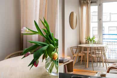 Velkommen til en lys og tiltalende 2-roms med attraktiv beliggenhet på Rodeløkka/Grünerløkka, like ved Carl Berners plass. Leiligheten ligger høyt og fint i 5. etasje med heis, og har en meget arealeffektiv planløsning. Store vindusflater gir rikelig med naturlig lys, og fra stuen er det skyvedører for en fransk balkong (*disse skal kanskje fjernes). Boligen fremstår lys og pen med en-stavs parkett og lyse overflater. Kjøkken fra 2007 med integrerte hvitevarer, flislagt bad (2004) med opplegg for vaskemaskin og soverom med garderobeskap. Innvendig bod samt kjellerbod. Varmtvann og oppvarming via fjernvarme samt kabel-TV er inkludert. Velordnet borettslag med mulighet for leie av parkeringsplass. Kort vei til parker, restauranter, butikker og svært gode kollektivforbindelser.