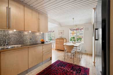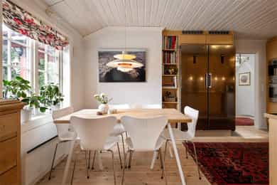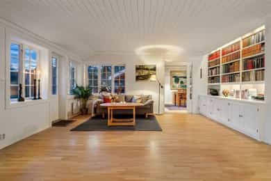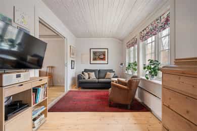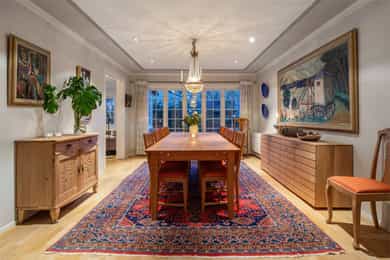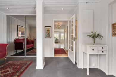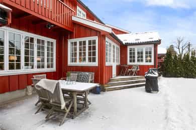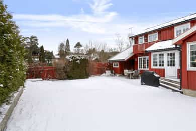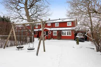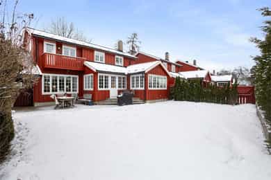 En klassisk og lys enebolig i kjede over 3 plan. Boligen ligger tilbaketrukket i grønne og skjermede omgivelser med gode solforhold. Boligen har en praktisk og innholdsrik planløsning og fremstår som lys og trivelig med gode sosiale soner. Attraktiv og barnevennlig beliggenhet med kort vei til Hemingbanen. Høydepunkter: - Carport - 4 soverom på samme plan - Peis i stue og kjellerstue - Fellesareal med lekeplass - Sol hele dagen og sen kveld - 2 baderom og praktisk vaskerom - Godt med lagringsplass i flere boder - Lyse og store stuer med plass til flere soner - Fredelige omgivelser med flotte turområder - Store vindusflater gir mye lys og en god atmosfære - Meget sentral beliggenhet med kort vei til servicetilbud, off. transport, Slemdal skole, barnehager og Hemingbanen