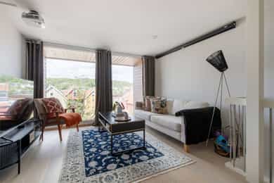 # Sjøutsikt # Felles takterrasse # Delikat romslig soverom # Kjøkken med åpen løsning # Kort vei til både sentrum og rekreasjonsmuligheter Her vil Nordvik Bolig ved Sebastian Ramsdal Lindell ønske deg velkommen til denne lekre leiligheten i 1. etasje med en helt fantastisk utsikt. Kort avstand til både sentrum og diverse flotte turområder. Her kan "alle" bo og trives godt da det er både parkering i carport og heis i bygget. Leiligheten holder en "flytt rett inn" standard, og her trenger du ikke gjør noe hvis du ikke vil. Den innglassede balkongen blir en ekstra stue på de solfylte og deilige høst- og vårdagene. Skal du av gårde? Da tar du bare å låser leiligheten å drar av sted. Dette er så enkel hverdag du kan få. Det skal også nevnes at du har en av Norges beste menyer en rusletur unna!