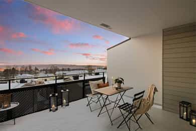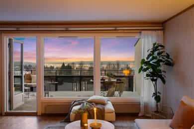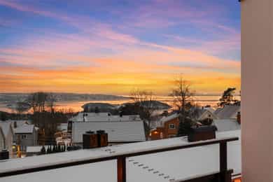 Toppleilighet med solrik og skjermet terrasse med fjordutsikt | Garasje | To bad | Stille og rolig | Oppussingsobjekt