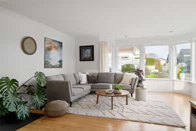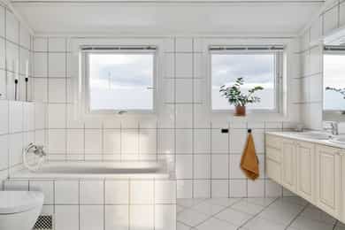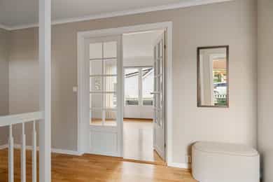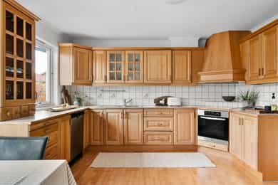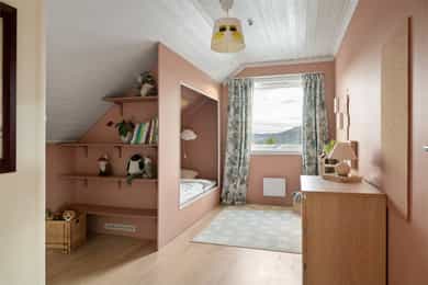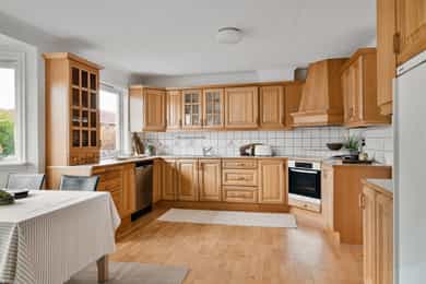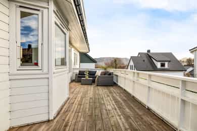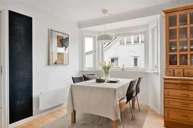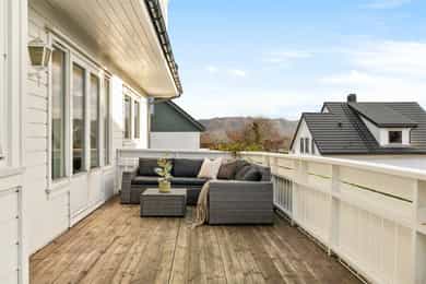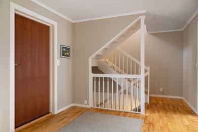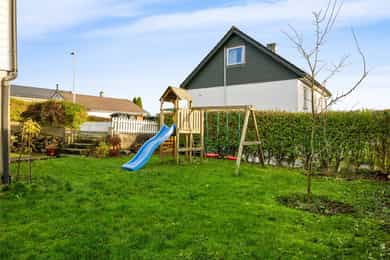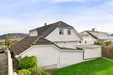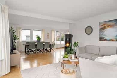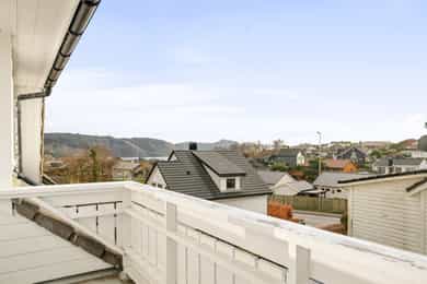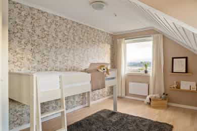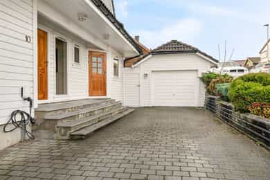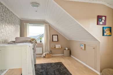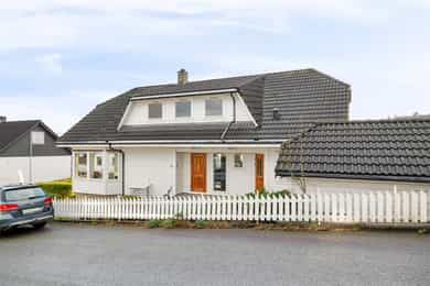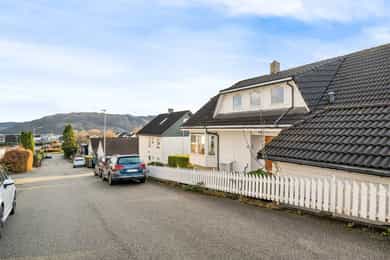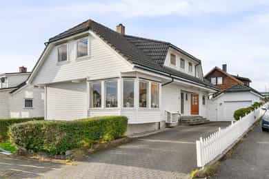 Enebolig over tre plan med garasje, fire soverom beliggende i en rolig gate med lite trafikk, utsikt og gode solforhold.