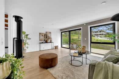Velkommen til Sagstgrenda 8E - Lekker, nyoppført og innholdsrik familiebolig med gjennomtenkte løsninger for den moderne familien. Husets eksteriør gir boligen et stilsikkert og moderne uttrykk. Boligen er bygget med god standard, gjennomførte løsninger og materialer levert av kjente kvalitetsleverandører. Boligen ligger fint plassert som gir hyggelig utsikt over nabolaget og meget gode solforhold. Høydepunkter: