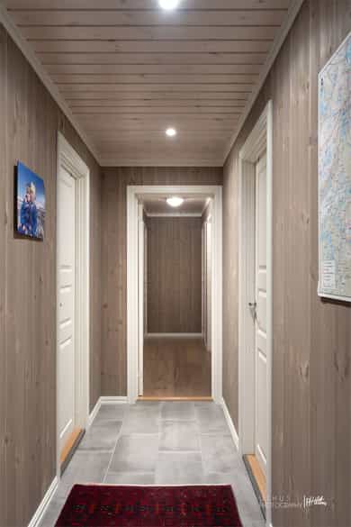 Boligen er over et plan og inneholder: Stue/kjøkken, entré, gang, vaskerom, to bad og fire soverom. Fra stuen er det utgang til en balkong på ca. 70 kvm. Boligen har også et anneks på tomten bestående av bod og annet.
