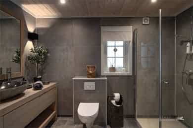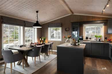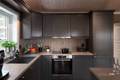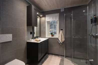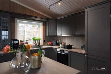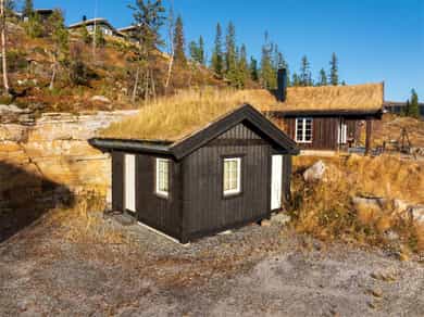 Taktekkingen er av torv. Taket er besiktiget fra taknivå. Takrenner er av treverk, tekket med membran, nedløp er av kjetting og øvrige beslag er av overflatebehandlet stål i svart utførelse. Pipen er helblikket over tak. Veggene har bindingsverkskonstruksjon fra byggeår med stående bordkledning. Hytten har malte trevinduer med 2-lags isolerglass. Hytten har malt ytterdør og malt balkongdør med 2-lags isolerglass. Gulv: Flis på bad, vaskerom og entré, 1- stavsparkett i øvrige rom. Vegger: Baderomsplater på bad, trepanel i øvrige rom. Tak: Trepanel Gulv mot grunn er av betongdekke. Nivellering av gulvoverflater ble utført stue/kjøkken og soverom. Det er foretatt målinger i hvert hjørne av nevnte rom, samt flere punktmålinger innenfor 2m. Boligen har elementpipe og vedovn plassert i stue/kjøkken. Hytten har hvitmalte, speil-profilerte innvendige dører. Badet er bygget i 2019 i henhold til den tekniske forskriften TEK17 som var gjeldende på byggingstidspunktet. Overflatene på vegger baderomsplater og gulv er flislagt, med mosaikkfliser i dusjsone, mens taket er trepanel. Badet har innredning med servant, overhengende speil med belysning. Dusjen er plassert i hjørnet og har håndholdt dusjarmatur samt dusjvegger. Videre er det montert et vegghengt toalett. Elektriske varmekabler er installert i gulvet. Badet ventileres via en elektrisk avtrekksventil som er tilkoblet det balanserte ventilasjonssystemet. Veggene er kledd baderomsplater, taket har panel med innfelte downlights. Gulvet er flislagt og med mosaikkflis i dusjsone. Rommet har elektriske varmekabler som oppvarming. Vaskerommet har panel på vegger og tak. Gulv er flislagt. Vaskerommet er innredet med varmtvannsbereder og vaskemaskin. Kjøkkeninnredningen har gråmalte, profilerte fronter, benkeplate i heltre med nedfelt vaskekum og platetopp. Innredningen består av benkeskap, overskap og kjøkkenøy. Det er integrerte hvitevarer, herunder stekeovn, oppvaskmaskin og kjøl/fryseskap. Det er montert vannstoppsystem og komfyrvakt. Ventilator over platetopp med avtrekk koblet ut i friluft. Innvendige vannledninger er utført i plast (rør i rør). Det er foretatt besiktigelse i rørskap på vaskerom. Hytten har naturlig ventilasjon via luftespalter i vinduer på soverom og stue/kjøkken. Det er avtrekksventil på bad og kjøkken. Hyttens oppvarmingskilder er panelovner på soverom, varmekabler på bad, i entré og stue/kjøkken samt en vedovn i stuen. Varmtvannstanken er på ca. 200 liter plassert på vaskerom. Sikringsskap plassert på vaskerom, utstyrt med automatsikringer og kursfortegnelse. Automatisk måler er plassert i eget skap på yttervegg. Lovpålagt røykvarsler/brannslukningsutstyr medfølger. Det er foretatt en forenklet vurdering av boligens branntekniske forhold opp mot dagens byggtekniske forskrift. Det er i forbindelse med salget utarbeidet en tilstandsrapport fra bygningssakkyndig. Tilstandsrapporten er en teknisk gjennomgang av boligen med oppdagede avvik. Forhold som har fått TG2 og TG3 må gjennomgås spesielt nøye, da disse indikerer avvik fra normal slitasje og/eller høy alder, med mulig behov for utbedring. Bygningsdeler som har fått TGIU er ikke undersøkt av takstmann. Ingen bygningsdeler har fått TG3. Bygningsdeler som har fått TG2 - Veggkonstruksjon(utvendig): Det er stedvis falmet og flassende maling. Overflatebehandling anbefales for å beskytte treverket. - Overflater vegger og himling(bad1):Manglende tetting kan medføre at platene trekker opp fukt fra bunn, noe som over tid kan føre til oppsvelling, misfarging eller redusert levetid på platene. Det må etableres silikon i bunn på baderomsplater for å beskytte eksponert treverk for fukt. - Overflater vegger og himling(bad2): Manglende tetting kan medføre at platene trekker opp fukt fra bunn, noe som over tid kan føre til oppsvelling, misfarging eller redusert levetid på platene. Det må etableres silikon i bunn på baderomsplater for å beskytte eksponert treverk for fukt. - Ventilasjon(vaskerom): Rommet har kun naturlig ventilasjon via spalte i vindu. Dersom avviket ikke utbedres vil det være fare for dårlig luftskifting og resultere i høy luftfuktighet og utvikling av skader. Elektrisk avtrekksvifte bør monteres for å sikre god luft skiftning i rommet. Bygningsdeler som ikke er undersøkt (TGIU) - Takkonstruksjon/Loft(utvendig): Hele takkonstruksjonen er gjenbygget. Det er ingen mulighet til vurdering utover alder og observasjoner fra underliggende etg. Tilstandsrapport for boligen er vedlagt salgsoppgaven. Se denne for nærmere informasjon om tilstandsgrad.