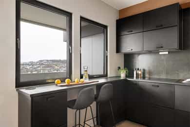 Velkommen til Gulaksveien 2 – en moderne og gjennomført leilighet i 16. etasje! Denne lyse og innbydende leiligheten er oppgradert innvendig de siste årene, slik at du kan flytte rett inn uten bekymringer. Leiligheten er modernisert med oppgraderte overflater i alle rom. Veggene er malt i tidsriktige fargevalg, og det er laminat på gulvene, med unntak av badet som er flislagt. Leiligheten har en praktisk og funksjonell planløsning som gir god utnyttelse av arealet og en god flyt mellom rommene. Fra den overbygde svalgangen kommer du inn i en lys og romslig entré med spotter i himling og god plass til yttertøy og sko i skyvedørsgarderobe. Stuen er lys og luftig med store vindusflater som slipper inn rikelig med dagslys. Den åpne og fleksible planløsningen gir gode møbleringsmuligheter, med plass til både en stor sofagruppe, TV-løsning og spisebord. Spisesonen er plassert slik at du kan nyte måltider med flott utsikt mot nærområdet. Fra stuen er det direkte utgang til balkong, hvor du kan nyte en flott utsikt - både over nærområdet og helt til Lifjell og Dalsnuten. Her har man god plass til sittegrupper og grill, perfekt for avslappende dager utendørs. Kjøkkenet har en delvis åpen løsning mot stuen, som gir en sosial atmosfære samtidig som det skjermer mot TV-sonen. Kjøkkenet ble oppgradert i 2020 og har en funksjonell utforming med svarte, slette fronter. Fliser på den ene veggen skaper en helhetlig stil og harmonerer godt med resten av leiligheten. To store vinduer gir rikelig med lys og god ventilasjon. Kjøkkenet har generøse benke- og oppbevaringsmuligheter, og følgende integrerte hvitevarer medfølger: kjøl/frys, oppvaskmaskin, stekeovn og koketopp. Badet ble renovert av fagfolk i 2023. Det er stilrent innredet med 60*60 gulvfliser og lyse, behagelige fliser på vegger. Badet har en romslig utforming, noe som gir god plass og gjør det enkelt å holde orden. Det er innredet med vegghengt toalett, dusjhjørne, vask i seksjon med skuffeplass, speil med belysning, samt opplegg for vaskemaskin og tørketrommel. Det er varmekabler i gulv og spotter i himling. Leiligheten har ett soverom av god størrelse med plass til dobbeltseng, nattbord og tilhørende møblement. Garderobeskap medfølger. Innvendig bod som i dag brukes som kontorløsning - ikke godkjent for varig opphold. I underetasjen finnes det et selskapslokale tilgjengelig for utleie til beboerne – perfekt for større sammenkomster og arrangementer. Denne moderne leiligheten kombinerer stil, funksjonalitet og en sentral beliggenhet – perfekt for deg som ønsker en innflyttingsklar bolig med flotte kvaliteter! Innvendige overflater: Innvendig er det gulv av laminat. Veggene har malte plater. Innvendige tak har malte plater. Noen mindre brukslitasjer Etasjeskiller er av betongdekke. Innvendig har boligen malte glatte dører. Teknisk: Innvendige vannledninger er av plast (rør i rør). Det er besiktiget i rørskap. Det er avløpsrør av plast. Boligen har naturlig ventilasjon. Jordvarme til varmesentral som distribueres til varmtvann Det er sentralanlegg for varmt vann. Dette er en forenklet kontroll begrenset til de spørsmål og undersøkelser som forskrift til avhendingslova (tryggere bolighandel) § 2-18 inneholder. Dette kan ikke sammenlignes med en kontroll utført av offentlig myndighet (Det lokale eltilsyn) eller registrert elektrovirksomhet, og en bygningssakkyndig har verken kompetanse eller lov til å foreta en slik kontroll. Tilstandsgraden er vurdert ut fra den forenklede og begrensede kontrollen som forskriften inneholder. El-anlegget kan ha feil og mangler som en slik forenklet undersøkelse ikke vil avdekke. Vær derfor oppmerksom på denne risikoen, og søk videre veiledning eller få en fullstendig kontroll utført av registrert elektrovirksomhet.