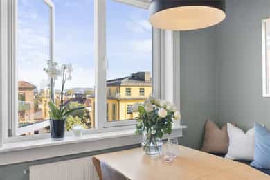 Nordvik ved Konstantin Karlsson ønsker velkommen til en flott 1-roms leilighet i Stavangergata 46 A. Leiligheten ligger meget attraktivt til på Bjølsen, med alt av bymessige tilbud i umiddelbar nærhet! Leiligheten oppleves som lys og trivelig, med en god planløsning og gjennomgående lyse farger som skaper en behagelig atmosfære. De store vindusflatene gir godt med naturlig lys, og boligen har en åpen løsning mellom kjøkken og stue, samt et funksjonelt bad med fliser. Det er også praktiske oppbevaringsløsninger i leiligheten. I Stavangergata 46 får du fyring, varmtvann og internett er inkludert i felleskostnadene, slik at de øvrige kostnadene er minimale. Badet ble rehabilitert i regi av borettslaget i 2014. Videre har borettslaget fellesvaskeri med gode maskiner fra Schulthess (nye i 2023) og to flotte takterrasser med gode solforhold og fin utsikt over Oslo. Svært veldrevet borettslag med god økonomi og vedlikeholdshistorikk. Kort vei til offentlig kommunikasjon og Handelshøyskolen BI. Det er ingen dokumentavgift og meget lave omkostninger. Ønsker du en fin leilighet du kan flytte rett inn i, sentralt plassert med kort vei til alt du måtte trenge, er dette leiligheten midt i blinken for deg! Kort oppsummert: - Topp- og endeleilighet - Arealeffektiv planløsning med en praktisk sovealkove - Badet er oppusset i regi av borettslaget i 2014 - Moderne kjøkken - Veldrevet borettslag - Felles solrik takterrasse - Fyring, varmtvann og fibernett 100/100Mbit inkludert i fellesutgiftene - Loftsbod - Heis - Moderne fellesvaskeri i kjeller - Kort vei til offentlig kommunikasjon - Sentral og populær beliggenhet med kort vei til alt man trenger i hverdagen - Nærhet til flotte tur- og friluftsområder - Handelshøyskolen BI innen gangavstand - Storo Storsenter i nærheten - To flotte takterrasser med gode solforhold og fantastisk utsikt - Kameraoveråkning på fellesområder - Sykkelparkering i borettslagets innlåste bakgård - Borettslaget har nylig pusset opp fasade og byttet vinduer (2016) - Ingen dokumentavgift Borettslaget har en egen nettside; www.stavangergata.no. Velkommen til visning!