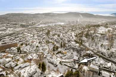 Boligen har en flott beliggenhet på Bragernes / Toppenhaug som er et sentralt, men tilbaketrukket og rolig boområde. Ønsker du å bo sentralt, men tilbaketrukket fra støy er dette en perfekt beliggenhet for deg. Drammen sentrum ligger bare en 5 minutters kjøretur fra boligen, og byr på et bredt utvalg av servicetilbud, butikker, caféer og restauranter. Verdt et besøk er den franske bakeren La Boulangeri med nydelige bakervarer og kaffe i et sjarmerende lokale. Ellers kan sentrum by på to kjøpesentre med mange butikker, vinmonopol og apotek. CC kjøpesenter ligger bare 800 meter fra boligen, hvor man finner alt man skulle trenge i hverdagen. I umiddelbar nærhet finner du også vakker natur. Det er enkel tilgang til marka fra boligen. Man kan blant annet gå hyggelige turer til Åspavliongen eller Spiralen, og derifra så langt du ønsker til fots eller med ski på beina. Åspaviljongen og Spiralen er populære destinasjoner og et hyggelig stoppested for en kaffe og vaffel. Drammen har også fått mye ros for elvepromenaden, med grusede gang- og sykkelstier langs store deler av elva. Prisbelønte Ypsilon bru knytter Bragernes og Strømsø på en elegant måte. På andre siden av Ypsilon brua finner du et av Norges største transformasjonsprosjekter. Her finnes Universitet og topp moderne bibliotek og flotte restauranter, i tillegg til Union Scene med kulturelle innslag. Beliggenheten er også perfekt med kort vei til ulike fritidsaktiviteter, skole og barnehager. Ikke langt unna ligger også Kjappen, en flott lekeplass og fotballbane. Dersom du pendler til jobben ligger boligen praktisk til med kort vei til togstasjon, med bare 13 minutters gange til Brakerøya togstasjon. Her ligger også nye Drammen sykehus.