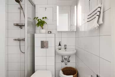 2. etasje: Borettslaget har trapp opp til leiligheten. Gjennom inngangsdøren befinner leiligheten seg på 15 kvm. Her har man plass til seng, egen spisegruppe/sittegruppe, garderobeskap og leiligheten har eget flislagt bad. Leiligheten ligger i enden av gangen, som fører til mindre støy fra passerende beboere i oppgangen. Det er ikke heis til etasjeplan 2 i Stavangergata 46B, men det er heis i bygget. Entré: Åpen entré med god plass til oppbevaring av yttertøy og sko. Callinganlegg med døråpner. Bad / wc: Pent, flislagt baderom med gulvvarme fra 2014. Badet består av veggmontert WC, dusjplass med dusjvegg og servant med ettgreps blandebatteri i innredning. Ny termostat til bad i 2025. Kjøkken: Kjøkkenet er praktisk utformet med rikelig skap- og benkeplass. Innredningen fra IKEA har laminert benkeplate, fliser mellom overskapene og lyslist som gir godt arbeidslys. Det er kum med ettgreps blandebatteri, kullfiltervifte over stekesonen samt integrert koketopp og stekeovn. Stue: Lys og arealeffektiv stue med god takhøyde og store vinduer, lett å innrede med plass til både sofa og TV-løsning. Bod: Leiligheten disponerer en bod i kjeller på 1,45 m², merket med 221. Overflater: Gulv: Laminat på gulv. Vegger: Malte flater i alle rom. Himling: Himlinger med malt betong. Vinduer: 2-lags press glass, prod. 2016. VVS-installasjoner, generelt (ventilasjon, varme og sanitær): Baderom med mekanisk avtrekk i himling. Fjernvarme tilknyttet radiator og elektriske varmekabler på badet, vannrør av rør-i-rør og avløpsrør av plast. Elkraft: Sikringsskap med automatsikringer i felles gang. Diverse: Internett (Fibernett). Porttelefon. Standard Boligen fremstår som pen med praktisk og arealeffektiv planløsning. Tilstandsrapport for boligen er vedlagt salgsoppgaven. Se denne for nærmere informasjon om tilstandsgrad.