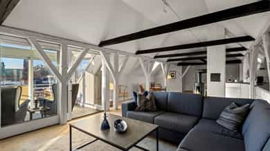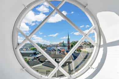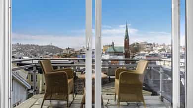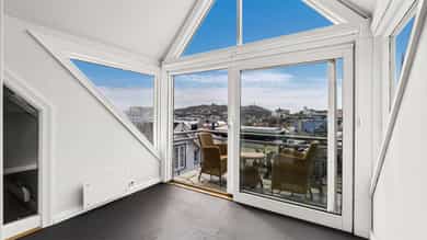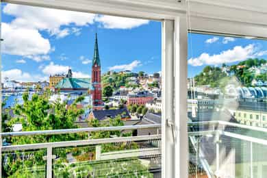 Elegant og stor toppleilighet med solrik balkong - Utsikt mot byfjord og sentrum - P-plass - 2 sov, 2 bad - Sentralt