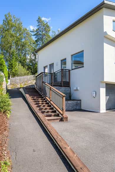 Velkommen til en fantastisk halvpart tomannsbolig med svært høy standard og lekker utførelse, 10 minutter unna Oslo grensen. Boligen strekker seg over 3 etasjer og kan friste med en nydelig utsikt og attraktiv beliggenhet i et barnevennlig boligstrøk. Videre byr boligen på rikelig med solrike uteplasser som hage, privat takterrasse, stor balkong som strekker seg over hele langsiden i 2 etg, samt terrasse utenfor 1 etg. Her er det også mulig å lage utleieenhet med egen inngang. Tomannsboligen ble omfattende ombygget i 2018/19 med delikate detaljer og smarte løsninger. Lekker peisovn i stuen gir en lun atmosfære på vinter- og kveldstid, og det er montert varmepumper. Boligen inneholder 5 soverom, 3 stuer, 2 bad/wc, vaskerom og et lekkert kjøkken. Det er elbillader, og garasje med bod.
