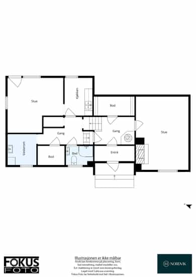 BRA-i: 41 kvm. Gang, bad, bod, vaskerom, kjøkken og stue