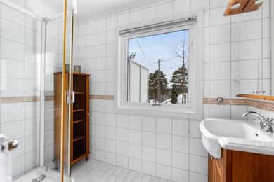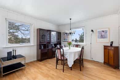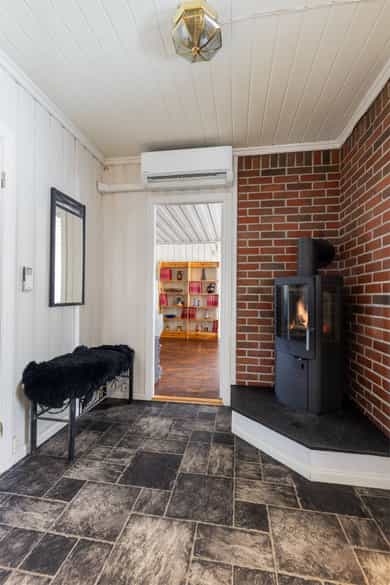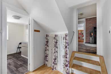 1. etasje (plan 1 og 2) Vindfang Velkommen inn til et praktisk vindfang med plass til yttertøy og sko. Gang Romslig og funksjonell gang som binder etasjene sammen på en naturlig måte. Stuer Boligen har to stuer med god plass til både gjester og hyggelige sammenkomster. Her er det rom for sofagruppe, spiseplass og øvrig møblering etter behov. Kjøkken Kjøkkeninnredning med slette fronter og fliser mellom over- og underskap. Det er ikke montert kjøkkenventilator. Kjøkkenet har et godt utgangspunkt og gir mulighet for tilpasninger etter egen smak. Bad Badet har fliser på gulv, vegger i kombinasjon av plater og mur, samt malte plater i himling. Det er ventil i vegg og luftespalte nederst på dør. Innredningen består av servant, toalett og dusjkabinett. Badet har behov for oppgradering før videre bruk. Vaskerom Vaskerom med betonggulv og vegger i kombinasjon av mur og plater. Ventil i yttervegg. Innredningen består av kum. Rommet må oppgraderes for å tilfredsstille dagens krav, og gir gode muligheter for å etablere en moderne og funksjonell løsning. Bod Praktisk bod med gode oppbevaringsmuligheter. 2. etasje (plan 3 og 4) Gang Praktisk gang som binder etasjen sammen på en fin måte. Stue Romslig stue med plass til både spisegruppe, sofagruppe og TV-møbler. Fra stuen er det utgang til terrasse, som gir en fin forlengelse av oppholdsrommet. Kjøkken Kjøkken med speilfronter og montert kjøkkenventilator. Det er fliser mellom over- og underskap, og himlingen er utført med takess. Bad Bad med fliser på gulv og vegger. Innredningen består av servant og dusjkabinett. Badet har behov for oppgradering for å tilfredsstille dagens standard. WC Separat WC med belegg på gulv, tapetserte plater på vegger og malte plater i himling. Innredning med servant og toalett. Soverom Etasjen byr på tre soverom, alle med plass til seng og oppbevaring.