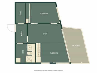 BRA-i: 46 kvm. Entré, bad, stue/kjøkken, bod og soverom.