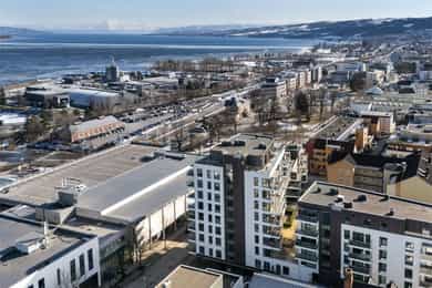 Leiligheten har en sentral beliggenhet midt i Gjøvik sentrum - Her er det umiddelbar nærhet til alt av byfasiliteter og servicetilbud, så vel som rekreasjonsmuligheter langs Mjøspromenaden og utvendig friluftsbad på Fastland. Videre har man Hovdetoppen hvor det også arrangeres konserter på taket av Gjøvik i sommerhalvåret. Mjøsas hvite svane, tradisjonsrike Skibladner ligger til kai for den som vil oppleve byen til vanns. For den aktive byr Gjøvik på en rekke treningssentre innenfor gangavstand, tennis/volleyball m.m. ved Fastland og flere baner med kunstgress og aktivtetshaller. Dagligvarehandelen kan for eksempel gjøres hos Kiwi Gjøvik i Trondheimsvegen, Rema 1000 Gjøvik Stadion eller CC Mat for et enda bredere utvalg. CC Gjøvik ligger kun 100 meter fra døren og byr på Innladets bredeste shoppingtilbud. Her har man butikker i alle kategorier samlet under ett og samme tak - I tillegg har man et godt utvalg av serveringssteder med både kafeer og restauranter. I Gjøvik Sentrum er utelivet også rett utenfor døren. Det er gangavstand til populære serveringssteder som Hygge, Fahlstrøm og pizzarestauranten Fauno med flere. Her kan man nyte god mat og godt selskap ute, eller ta med take-away hjem til leiligheten. Gjøvik har også et meget godt kollektivtilbud med både tog og buss. Fra Gjøvik Stasjon kan man hoppe på ringruta som enkelt frakter deg rundt i Gjøvik og Toten regionen, eller man kan ta buss retning Hamar/Lillehammer. Toget har også jevnlige avganger som passerer Hadeland, Nittedal og med endestopp i Oslo etter rundt 2 timer.