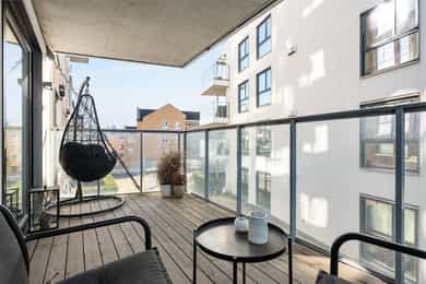SOLGT - VISNING AVLYST. Fin 2-roms hjørneleilighet med romslig balkong i Origo. Tilhørende parkering med elbil-lader.
