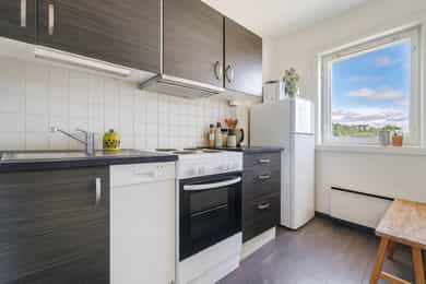 Fin leilighet med utsikt! Heis og balkong. Separat kjøkken. Oppvarming og varmtvann inkl. Nærhet til t-bane og butikker!