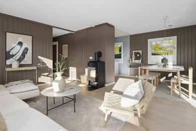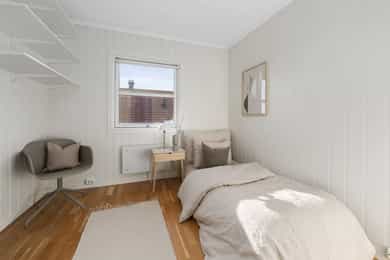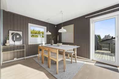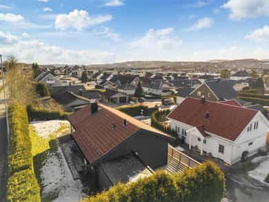 Lys og innbydende enebolig med lettstelt tomt. Solrike terrasser rundt boligen. Skiftet tak, vinduer, drenering mm.