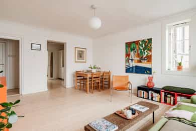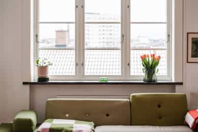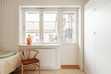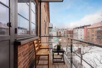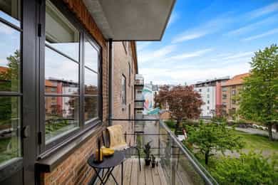Gjennomført og utrolig fin 3-roms med vestvendt balkong, originale tregulv og nydelig utsikt mot trehusbebyggelse.